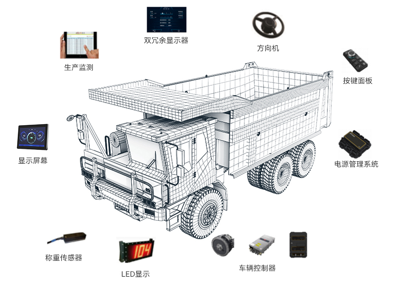 宽体车电控系统采用全局化管理实现了单车智能化与生产大数据的统一。不仅可对驾驶员行为进行考核,提高车辆使用率,还可在线实时监测车辆数据,提高工作效率。